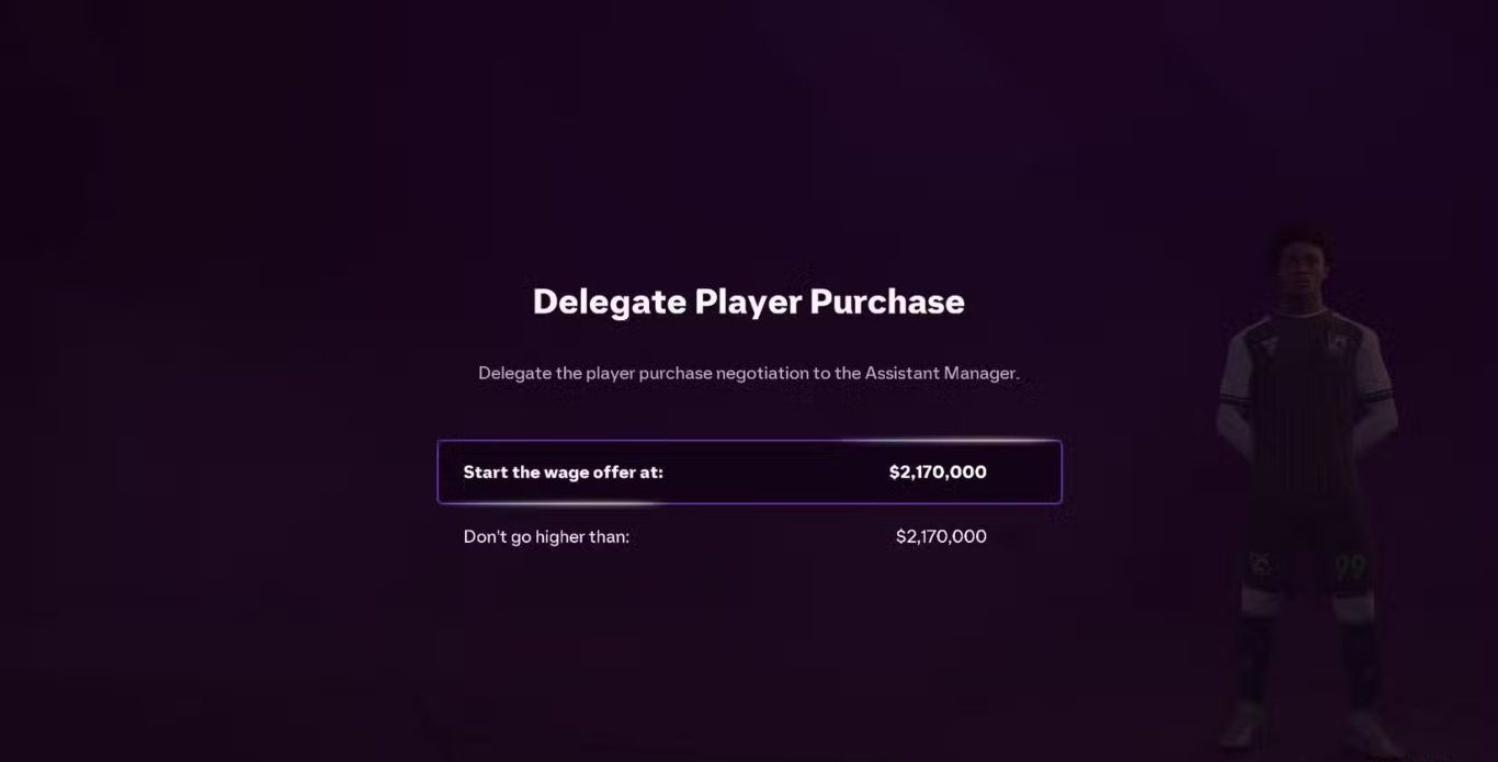 - تفويض المفاوضات في العالم الحقيقي لا يجلس المدرب دائمًا وجهًا لوجه مع اللاعب أو وكيله بل تختلف الآلية بين الأندية وغالبًا ما تتم عبر إداريين أو مدير رياضي ومن ثم فإن تفويض التعاقدات في اللعبة مع وجود تأخير بضعة أيام في إتمام الصفقات يضيف واقعية أكبر.