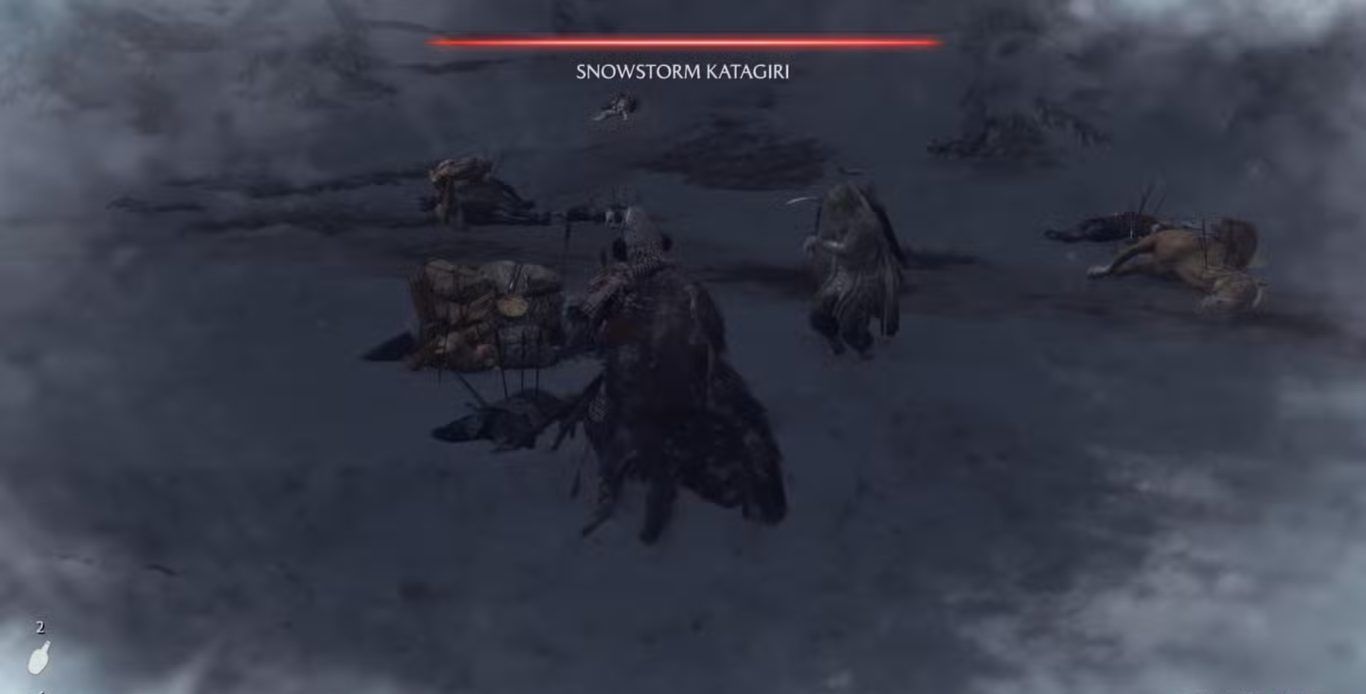 من هذه النقطة تابع التقدم شمالًا حتى تصل إلى بحيرة Sarobetsu. إذا كانت هذه هي زيارتك الأولى للمكان فستجد مجموعة من الأعداء متجمعين بالقرب من الجثث المنتشرة على الضفاف، إلى جانب خصم خطير يُدعى Snowstorm Katagiri وهو أحد الأهداف المطلوبة Bounty Target.