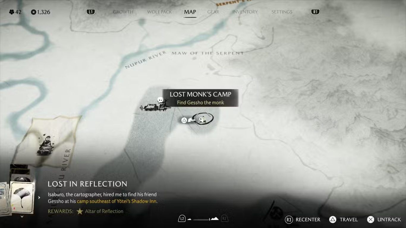 بعد الحصول على المهمة يجب التوجه جنوب النزل للعثور على الراهب Gessho الذي سيرشد Atsu إلى مكان مزار يُعرف باسم Altar of Reflection. هذا المزار هو العنصر الأساسي الذي يسمح للاعبين بتعلّم مهارات جديدة وتطوير قدرات Atsu القتالية والروحية. وتُعد هذه المهمة خطوة مهمة لا ينبغي تفويتها لأنها لا تقتصر على منح المهارات الأولى فحسب بل تُعلّم اللاعب أيضًا كيفية اكتشاف مواقع المزارات الأخرى المنتشرة في عالم Ezo مما يفتح الباب أمام تطور أعمق لشخصية Atsu ويمنح التجربة طابعًا تأمليًا وروحانيًا يميزها عن باقي المهام.