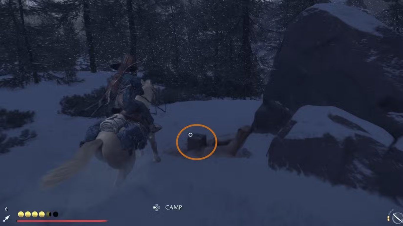بعد القضاء عليهم، تفحص Atsu المنطقة لتجد أن المكان كان نقطة مراقبة استخدمها المهاجمون لتعقّب القوافل المارة، ما يفسر كيف تمكنوا من الإغارة على شحنة Goemon بسهولة. بالقرب من إحدى الأشجار ستجد بقايا حبال وصناديق مفتوحة، ما يشير إلى أن الإمدادات المفقودة قد نُقلت من هنا إلى معسكرٍ آخر أعمق داخل الغابة.