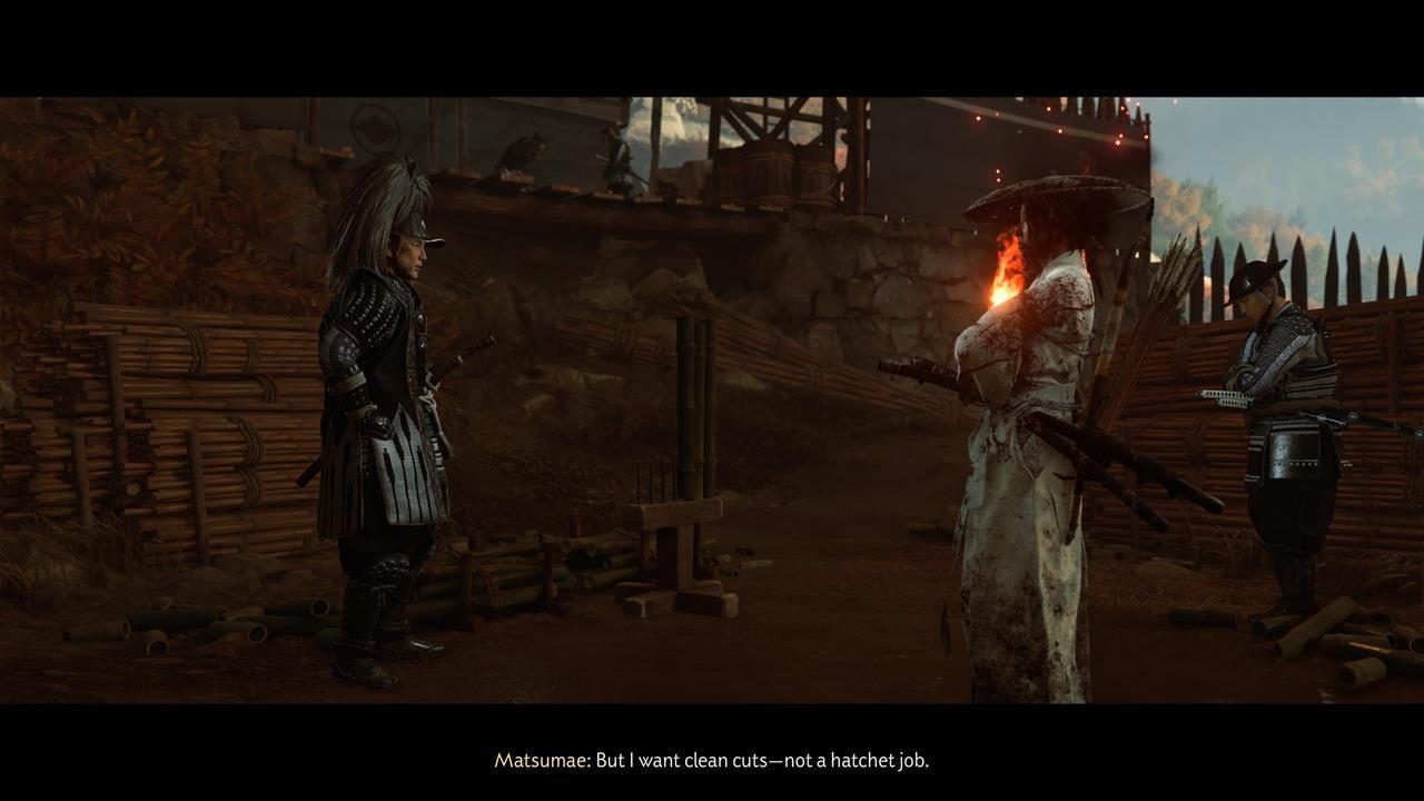 - الموقع: لا يمكن تفويته، إذ يجب إتمامه كجزء من المهمة الرئيسية عند الوصول إلى Ishikari Plain. في معسكر Matsumae، سيوبّخ أحد الضباط آتسو، وأثناء إظهار مهارتك ستحصل على خوذة Clan Matsumae بالإضافة إلى تعزيز في مؤشر الروح.