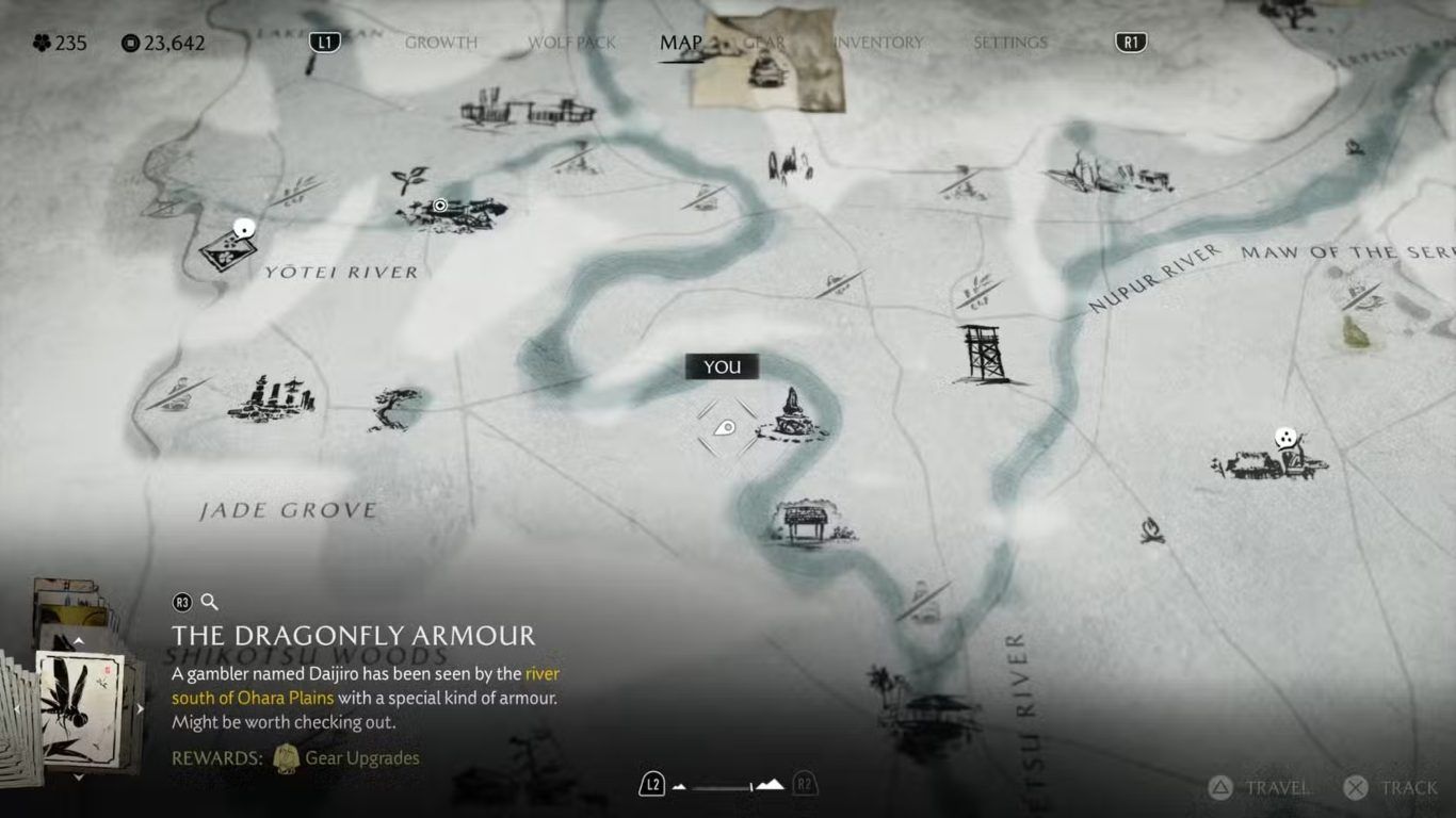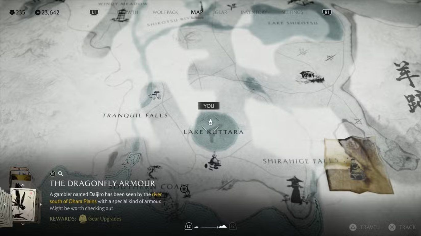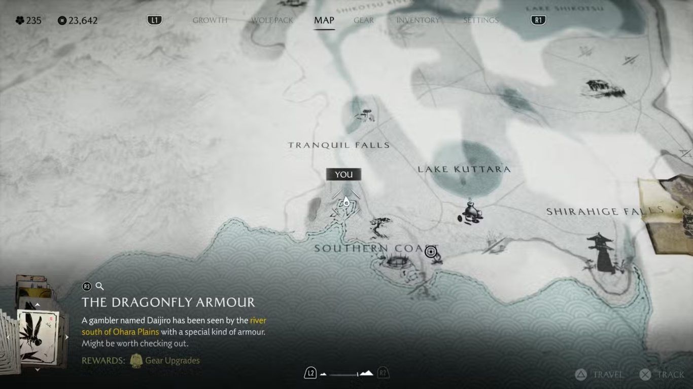 انطلق من منطقة Yotei Grasslands متجهًا نحو الجنوب حتى تصل إلى منطقة Southern Coast ثم تابع السير بمحاذاة الساحل قبل أن تتجه شمالًا وغربًا قليلًا لتصل إلى موقع هذا العنصر المميز المخفي بين شلالين كبيرين تتدفق مياههما في مشهد طبيعي رائع يعكس جمال المنطقة. يحتاج الوصول إلى هذا المكان بعض التسلّق والمناورة بين الصخور لذلك يُنصح باستخدام أدوات التسلق المتقدمة أو مهارات Atsu الخاصة لتجاوز العقبات بسهولة.