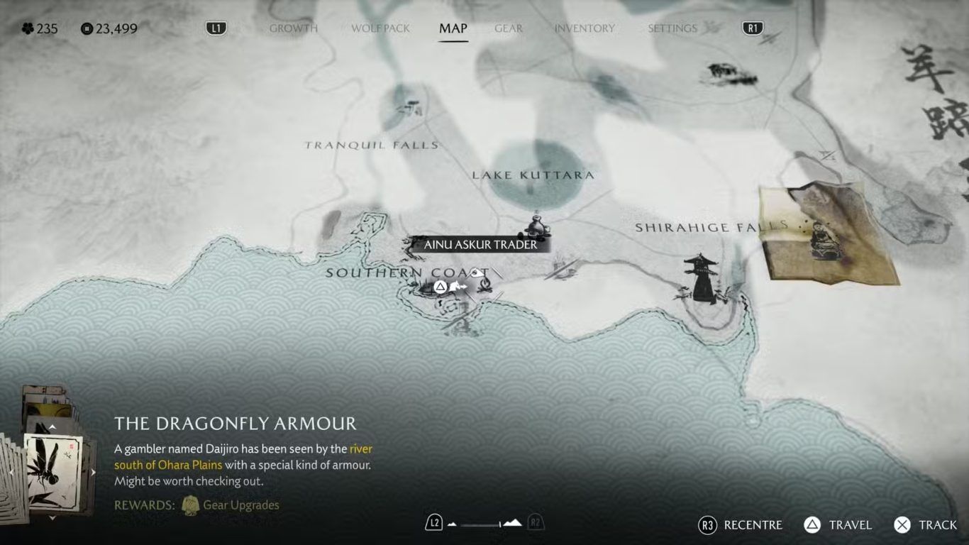 يمكن العثور على هذا العنصر أثناء تنفيذ مهمة جانبية تحمل اسم A Drink with a Stranger حيث يحصل اللاعب عليه من تاجر Ainu Askur الموجود أسفل حرف T في عبارة Southern Coast داخل منطقة Yotei Grasslands. أثناء متابعة أحداث هذه المهمة سيتعين على اللاعب التفاعل مع التاجر والبحث في المنطقة المجاورة لإتمام سلسلة المهام التي تنتهي بالحصول على هذا العنصر الفريد.