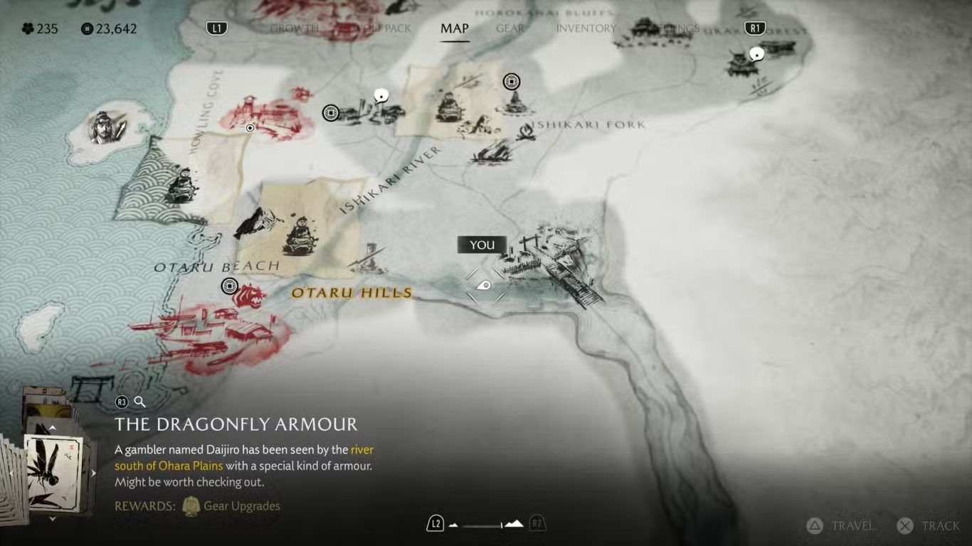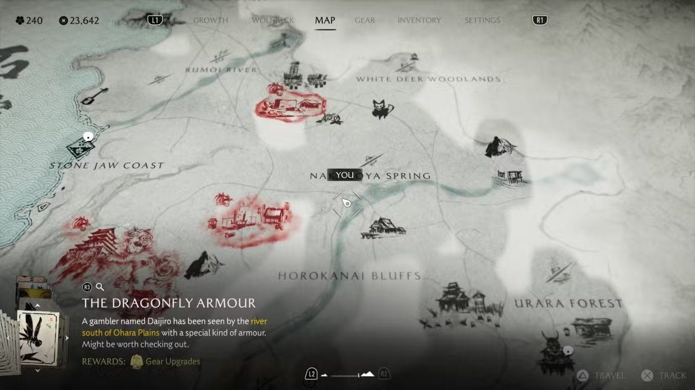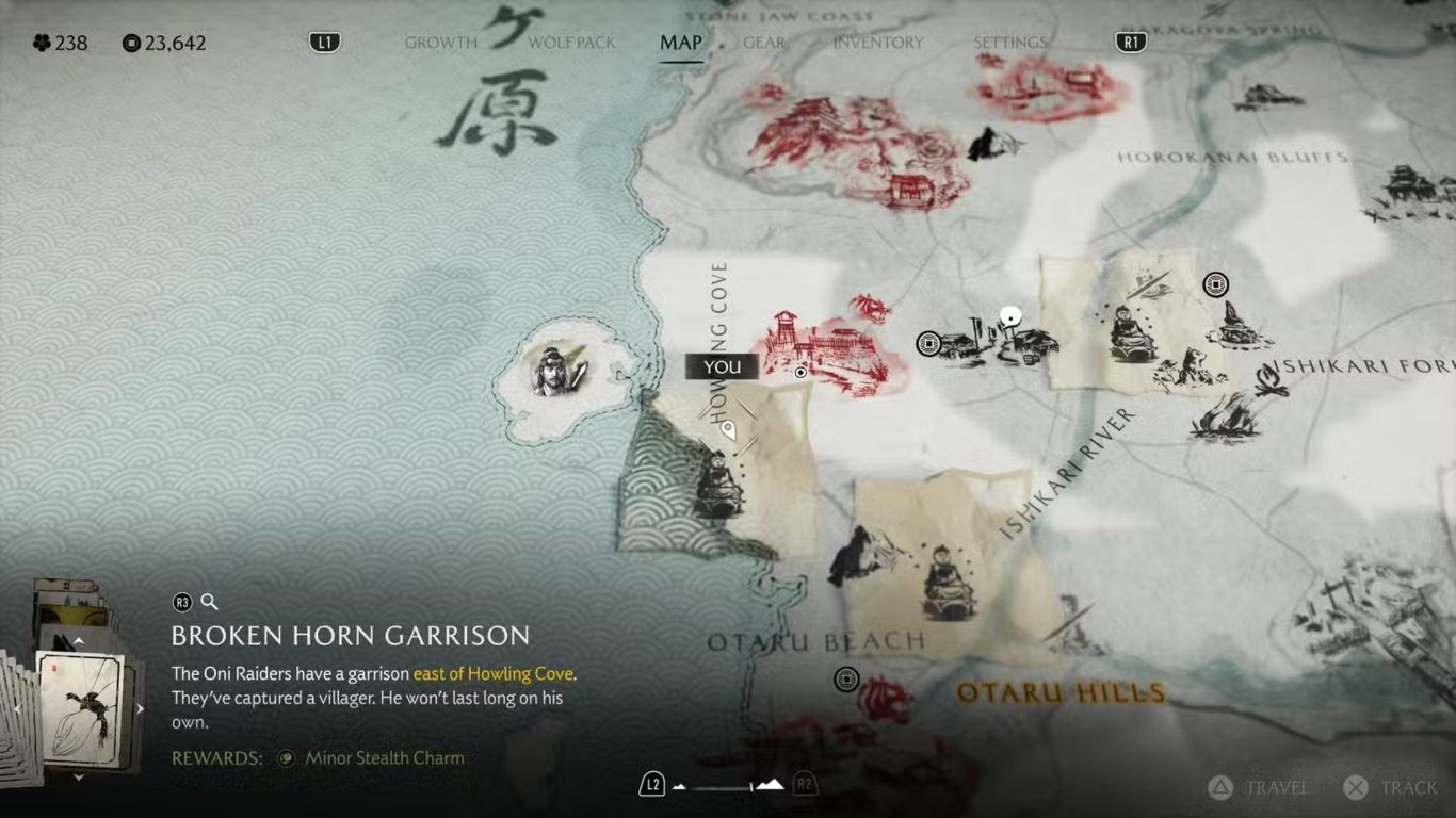 رحلة الوصول إلى هذا الموقع ليست سهلة إذ يتطلب الأمر بعض التسلّق والمناورة بين الصخور المبتلة إضافة إلى الحذر من الجنود الذين يحرسون المعسكر القريب. إلا أن الجهد يستحق العناء لأن Ku-e-shinok Ring يُعد من أندر المقتنيات التي يمكن جمعها في منطقة Yotei Grasslands.