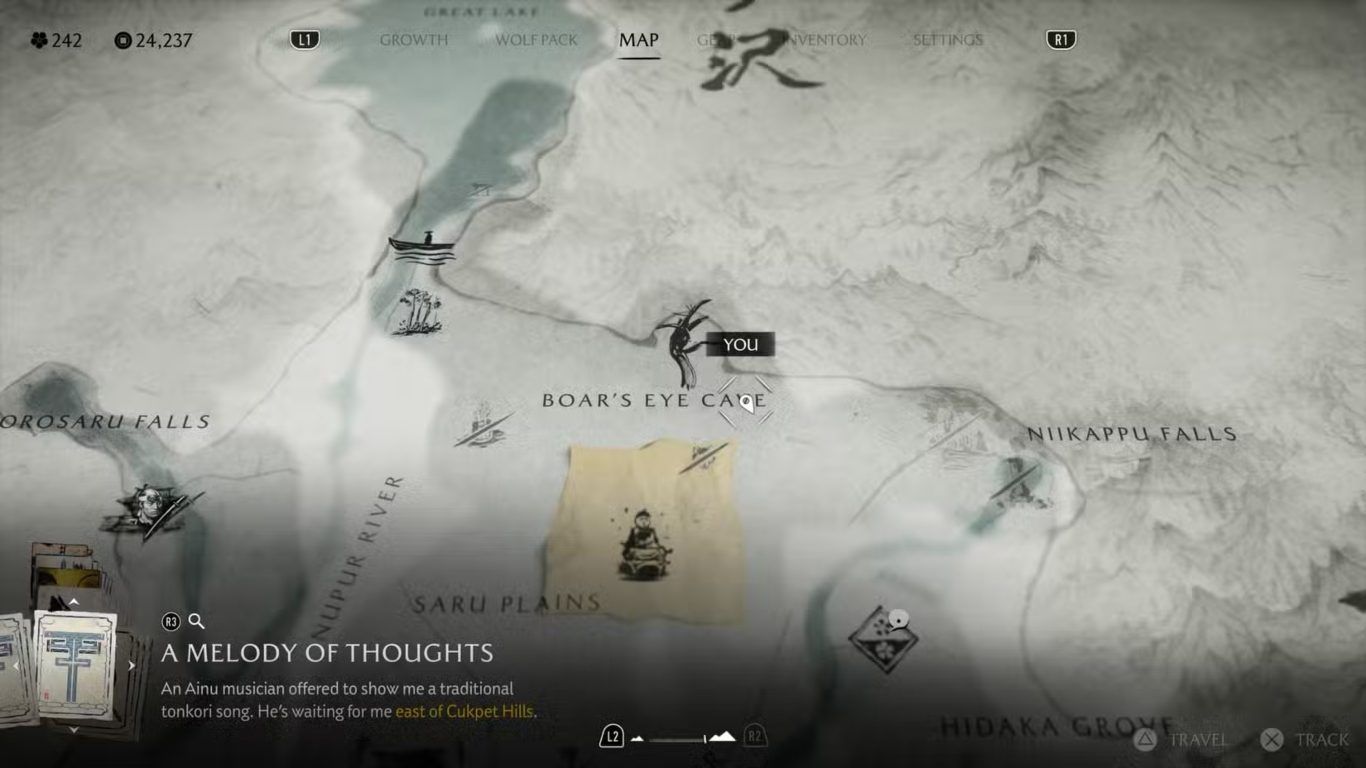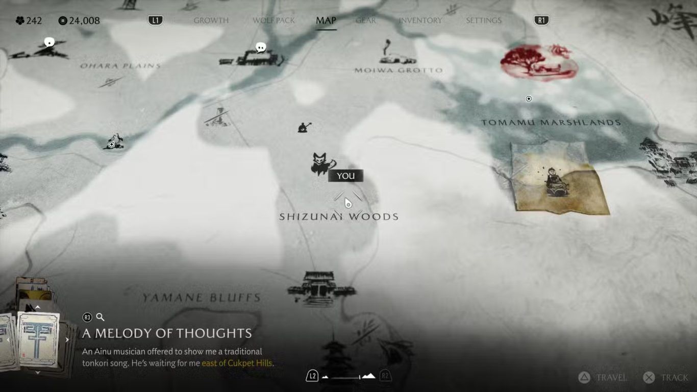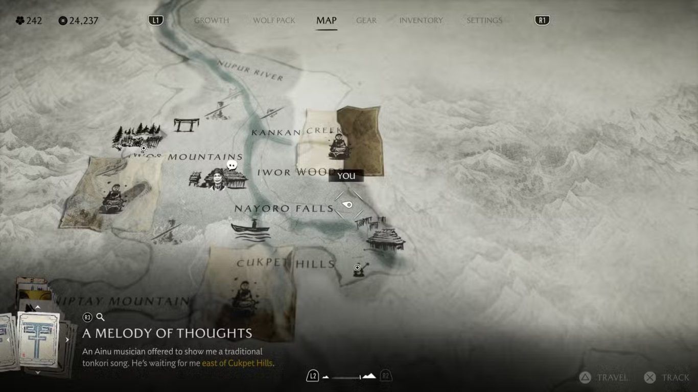 جميع عناصر Ainu في منطقة Nayoro Wilds في لعبة Ghost of Yotei