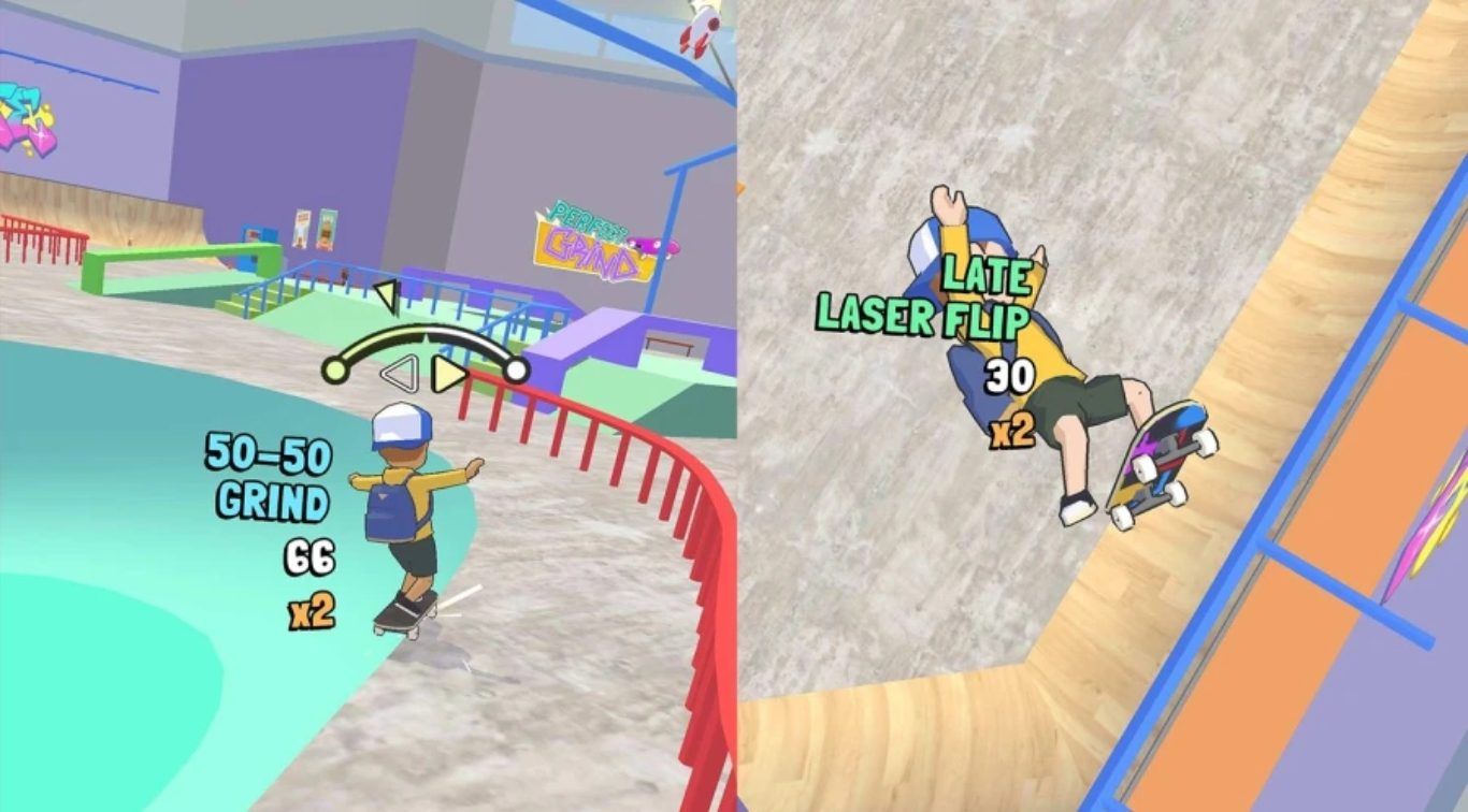 لحسن الحظ، لا يوجد حد زمني على الإطلاق، مما يعني أننا نستطيع التزلج بحرية طالما أردنا – تقريبًا مثل نسخة مصغرة من ألعاب Tony Hawk لكن بخرائط أصغر.