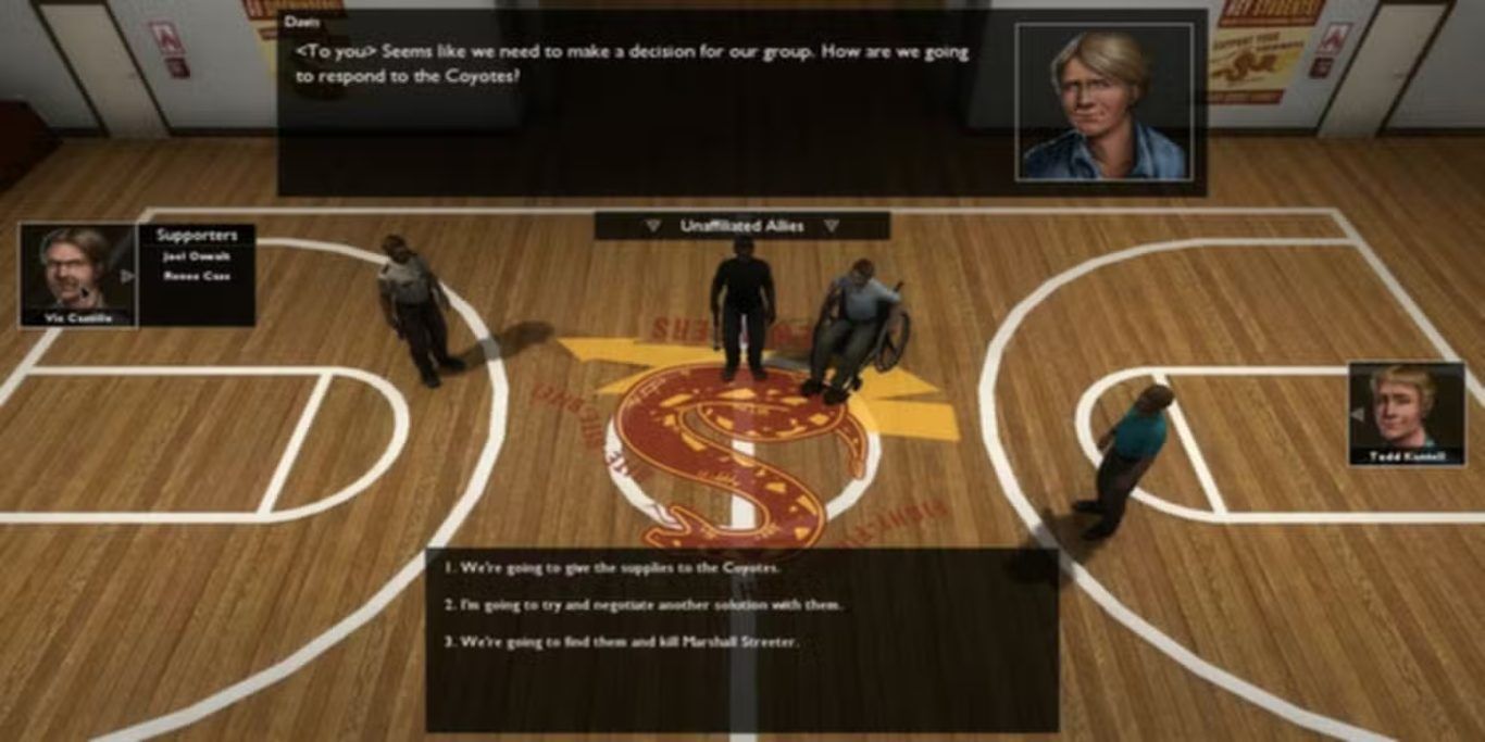 كل كلمة تُقال في الحوارات قد تُقرر مصير المجموعة؛ إذ أن نزاع بسيط قد يتحول إلى تمرد كامل. عليك التوسط بين الشخصيات، وإدارة الصراعات، ومواجهة صراع القوى داخل القاعدة. الموارد قليلة، والبارانويا في ازدياد، وكل قرار يصبح اختبارًا لقيادتك. وفي النهاية، الحفاظ على وحدة المجموعة قد يكون أصعب بكثير من الحفاظ على حياتها.