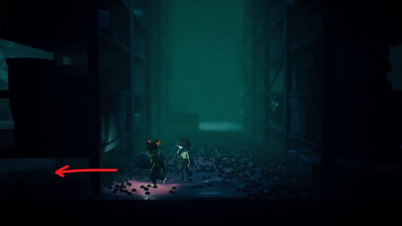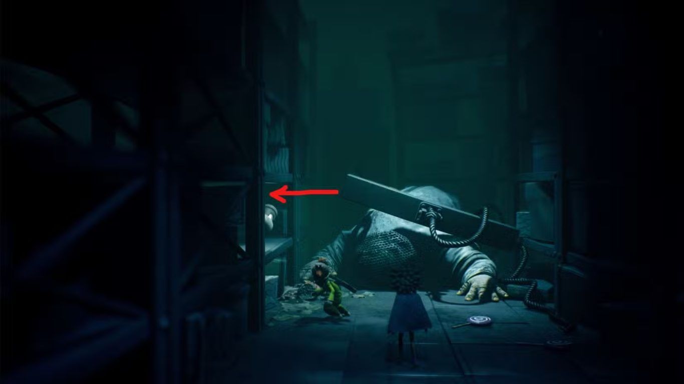 في الداخل ستجد ممرًا جانبيًا يقودك إلى غرفة تخزين مهجورة تحتوي على بعض المعدات القديمة والرفوف المائلة يمكنك استغلال هذا المكان لالتقاط أنفاسك أو مراقبة حركة العامل من خلال الفتحة الخلفية قبل أن تتابع طريقك نحو الهدف التالي وهو الوصول إلى البطارية الثانية وتشغيل المصعد في الفصل الثاني من لعبة Little Nightmares 3.