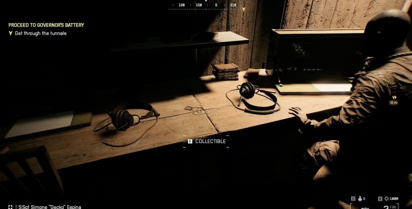 اقترب من المكتب وتجاوز الحبل الممدود أمامه بالقفز فوقه ثم تفقد سطح المكتب لتجد عليه بطاقة تعريف Dog Tag تعود لأحد الجنود الذين شاركوا في الحرب العالمية الثانية وتُعد هذه البطاقة من المقتنيات النادرة التي تمزج بين التاريخ الحقيقي وعالم اللعبة التخيلي التقط البطاقة بالزر المخصص لمنصتك وستُضاف فورًا إلى مجموعتك مما يجعلك أقرب إلى إكمال جميع مقتنيات مهمة The Rock.