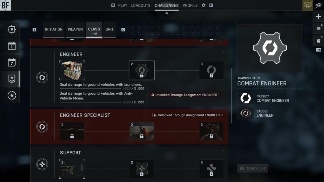 فئة Engineer تُعد العمود الفقري للدفاعات في Battlefield 6، إذ تتولى مسؤولية إصلاح المركبات وتدمير معدات العدو. مسار التدريب Combat Engineer Training Path يمنح هذه الفئة قدرات إضافية في التعامل مع المركبات الأرضية والقتال التكتيكي. لفتحه، يجب عليك إتمام التحديات التالية: