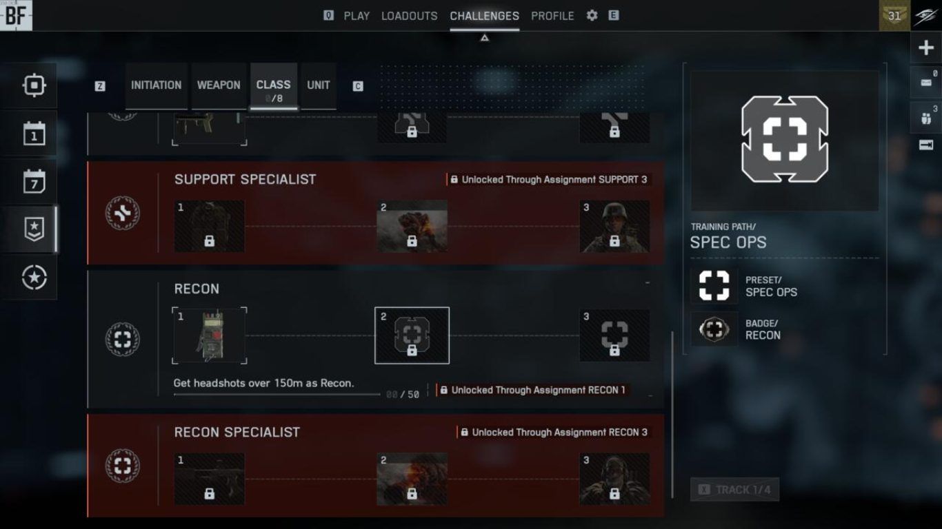 فئة Recon هي العين التي ترى كل شيء في ساحة المعركة، ومسار التدريب Spec Ops Training Path يجعلها أكثر دقة وخطورة في القنص والاستطلاع. لفتح هذا المسار، يجب عليك تنفيذ ما يلي: