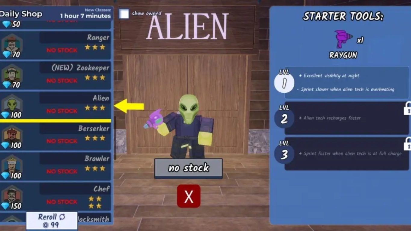 فئة Alien في لعبة 99 Nights in the Forest في Roblox