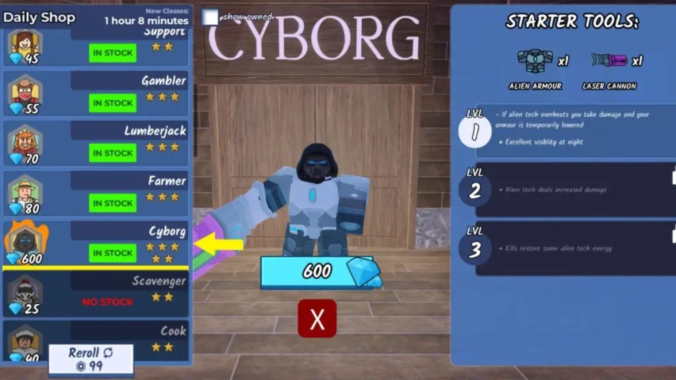 فئة Cyborg في لعبة 99 Nights in the Forest في Roblox