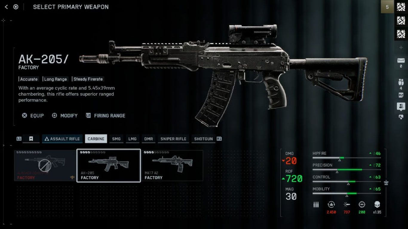 تأتي بندقية AK-205 على رأس قائمة البنادق من فئة Carbine في Battlefield 6، ويُجمع معظم المحترفين على أنها واحدة من أفضل الأسلحة في الميتا الحالية بفضل توازنها الفريد بين الدقة والتحكم وسرعة إطلاق النار.