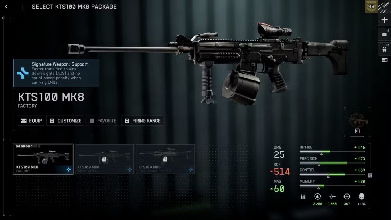 يُعد KTS100 MK8 المعروف أيضًا باسم Ultimax أحد أكثر الرشاشات الثقيلة دقة وثباتًا في Battlefield 6 فقد صُمم خصيصًا لتوفير نيران قمعية دقيقة على المدى البعيد مع ارتداد يكاد يكون معدومًا مما يمنح اللاعب قدرة مذهلة على الحفاظ على الهدف داخل نقطة التصويب حتى أثناء الإطلاق المستمر