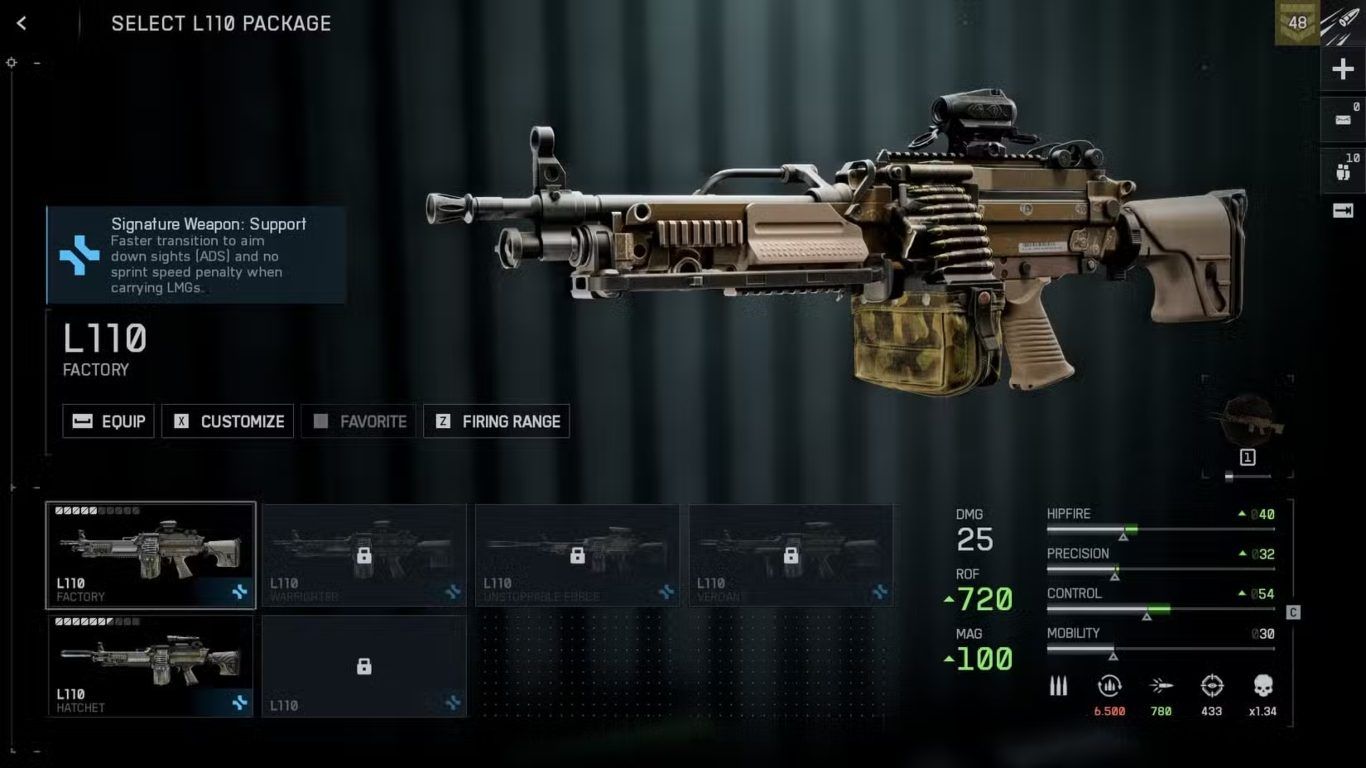 في النهاية يمكن القول إن L110 هو السلاح المتوازن الكلاسيكي ضمن فئة الرشاشات الثقيلة في Battlefield 6 فهو لا يبالغ في القوة ولا يعاني من نقاط ضعف واضحة ويظل خيارًا موثوقًا لكل من يريد سلاح دعم فعّال وبسيط الاستخدام قادر على التكيف مع أي نمط قتال أو خريطة في اللعبة.
