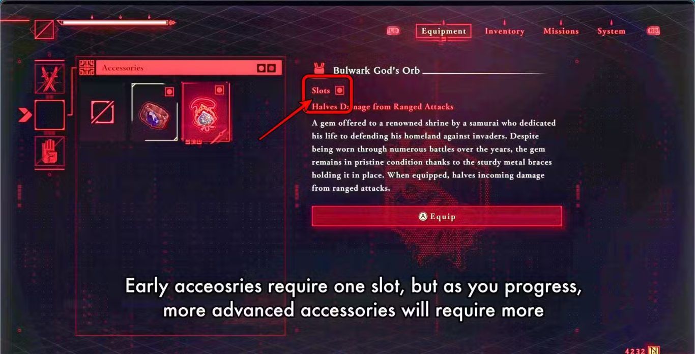 مع تقدمك في اللعبة ستجد أن عدد الخانات يرتبط بمدى تقدمك في المهمات الرئيسية والجانبية إذ يتم فتح خانات جديدة تلقائيًا بعد هزيمة زعماء محددين أو إتمام تحديات خاصة كما يمكنك الحصول على ترقيات إضافية عبر زيارة الحدادة في قرية Tenshin حيث يمكنها ترقية العتاد مقابل أرواح الشياطين النادرة التي يتم جمعها من المعارك كل ترقية تمنحك خانة جديدة حتى تصل إلى الحد الأقصى الذي يبلغ أربع خانات.