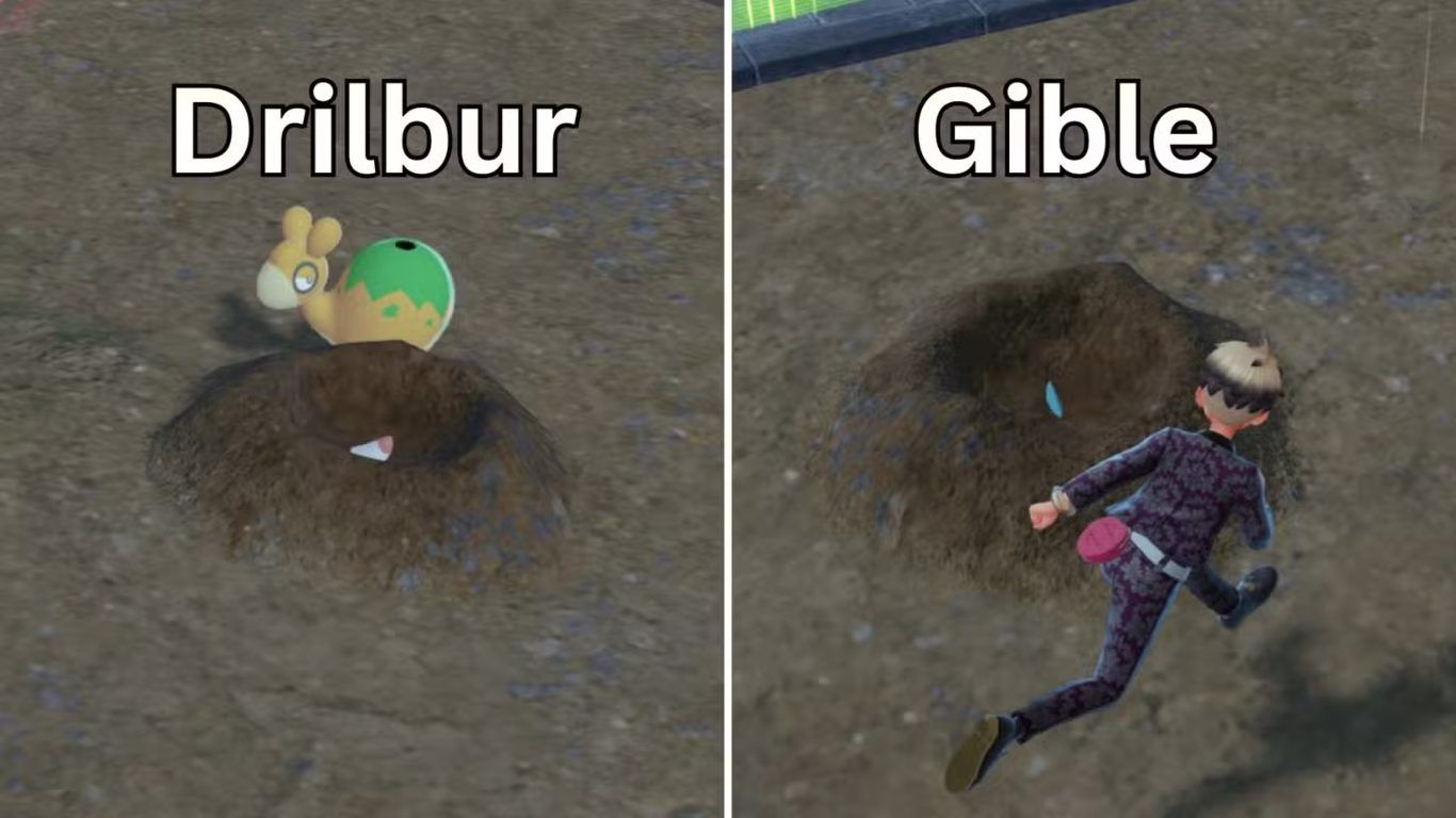 أسهل وسيلة لمعرفة ما إذا كانت الحفرة تحتوي على Gible أو Drilbur هي فحصها من الداخل قبل الدخول إليها فعند النظر داخل الحفرة إذا لاحظت وجود نقطة حمراء صغيرة محاطة بلون أبيض فهذا يعني أن الموجود بالداخل هو Drilbur أما إذا رأيت نتوءًا أزرق اللون يبرز قليلًا من الحفرة فهذا دليل واضح على أن Gible هو الذي يختبئ بداخلها مما يجعلها فرصة ممتازة للإمساك به.