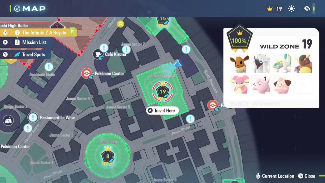 جميع Pokémon في المنطقة البرية التاسعة عشرة Wild Zone 19 في لعبة Pokemon Legends Z-A وأماكن العثور عليهم
