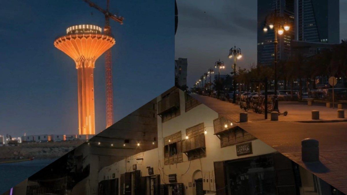 أما في جدة، وتحديدًا في منطقة البلد التاريخية، فقد ظهرت الإنارة العامة في الشوارع القديمة وهي تتبدّل بين الظلام والنور بشكلٍ متتابعٍ لافت، انعكست على واجهات المباني العتيقة بطريقةٍ خلقت مشهدًا بصريًا مدهشًا بدا وكأنه جزء من عرضٍ فنيٍّ مجهول المصدر.