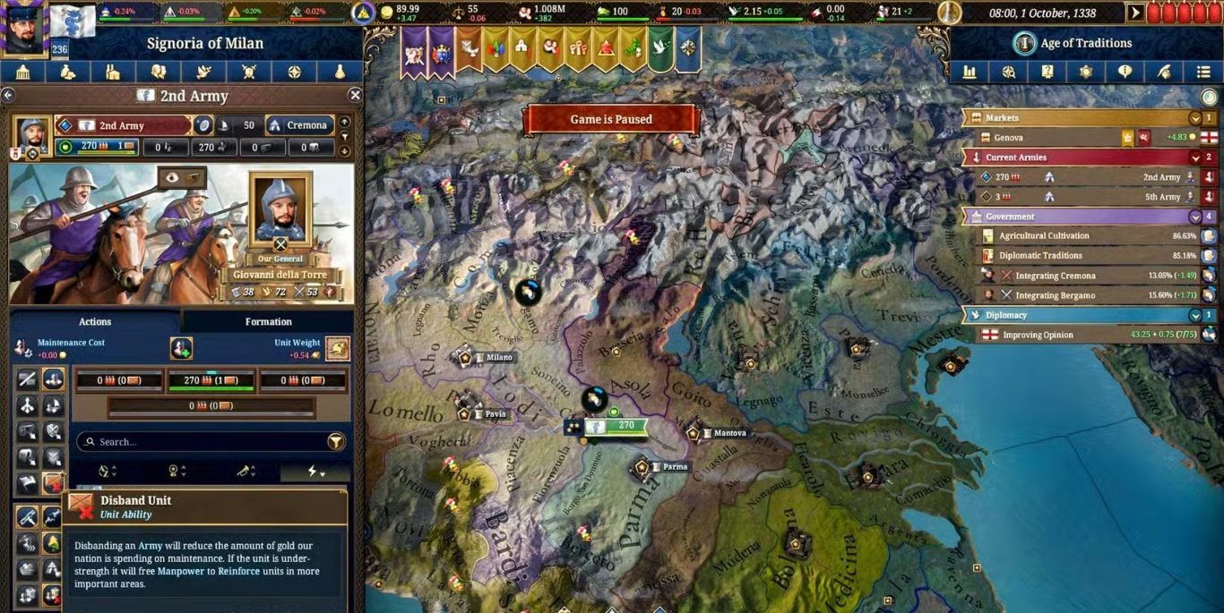 تفكيك الوحدات (Disband Units) في لعبة Europa Universalis 5