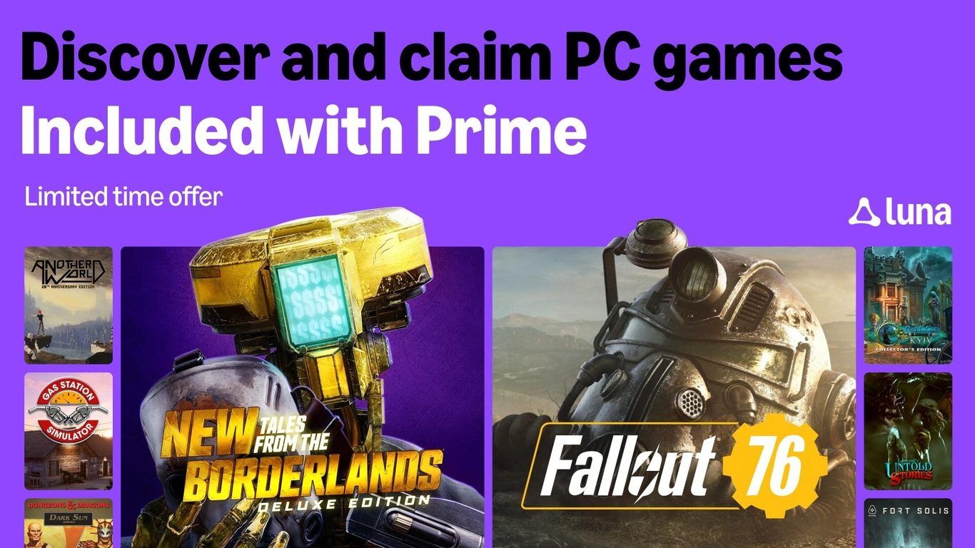 ورغم أن الخدمة أصبحت الآن جزءًا من منصة الألعاب Luna التابعة لـ Amazon، والتي تركز بشكل أساسي على بث الألعاب، فإن العرض لا يزال يعمل بالطريقة نفسها التي اعتاد عليها مشتركو Prime Gaming. إذ يمكن للمشتركين في Amazon Prime المطالبة بمجموعة من ألعاب الحاسوب كل شهر، وتنزيلها والاحتفاظ بها بشكل دائم.