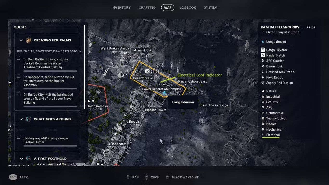 إلى جانب خريطة Dam Battlegrounds، يمكن للاعبين توسيع نطاق البحث في خرائط أخرى مثل Blue Gates وSpaceport، حيث تتضمن هذه الخرائط مناطق يمكن فيها العثور على موارد إلكترونية مشابهة، بشرط التركيز على المناطق التي تحمل رمز Electronics أو Technology على الخريطة.