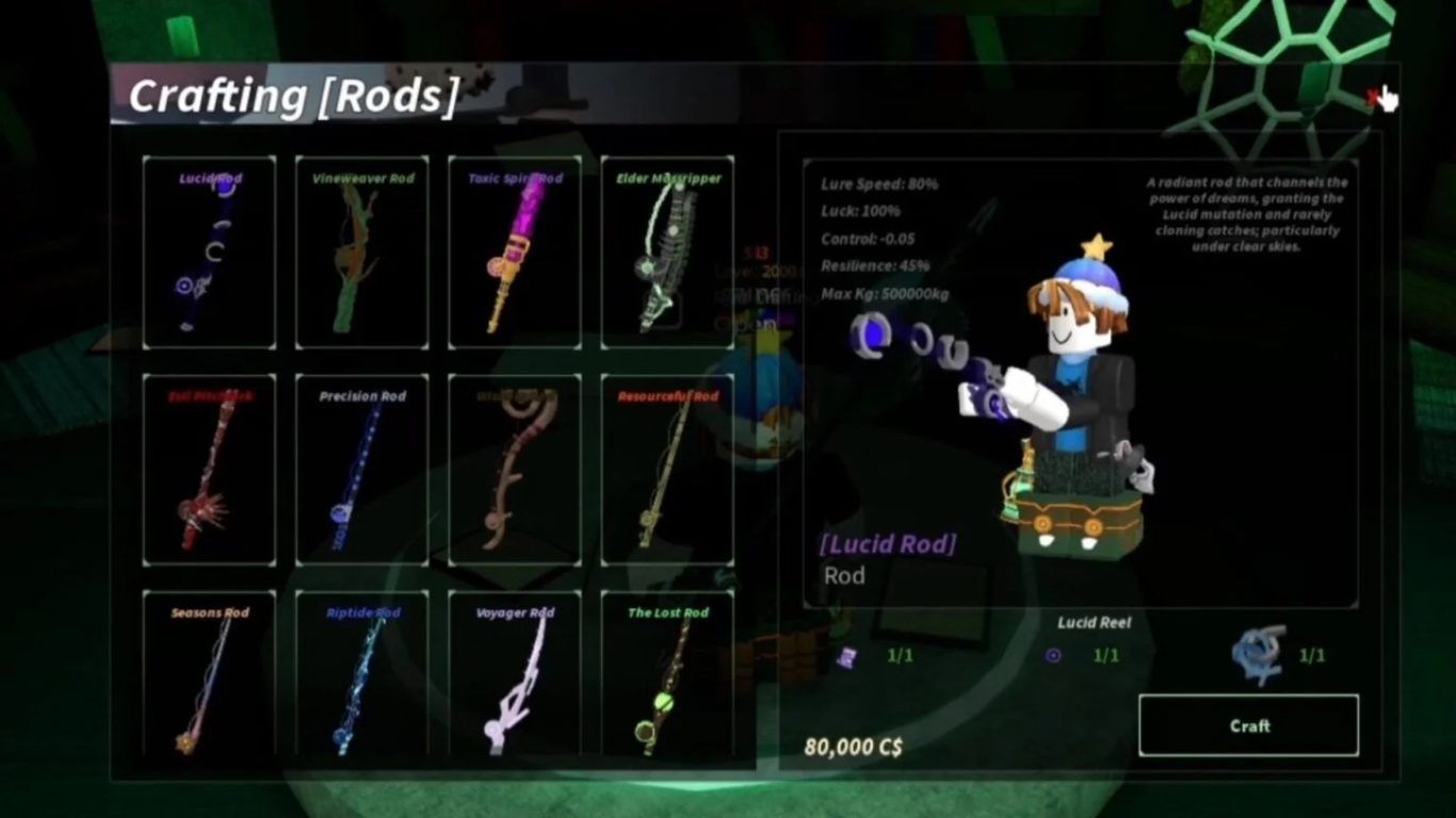 بعد جمع جميع المكونات الثلاثة، توجّه إلى موقع Ancient Archives وقم بصنع عصا Lucid Rod مقابل ٨٠٬٠٠٠ C$. عند الانتهاء من تصنيعها، ستُضاف العصا إلى مجموعتك، لتصبح من أقوى أدوات الصيد في اللعبة بفضل خصائصها الفريدة وقدرتها على زيادة الأرباح بشكل كبير. في القسم التالي من الدليل، يمكن استعراض إحصائيات العصا (Stats) والتأثيرات الخاصة (Mutation) التي تقدمها.