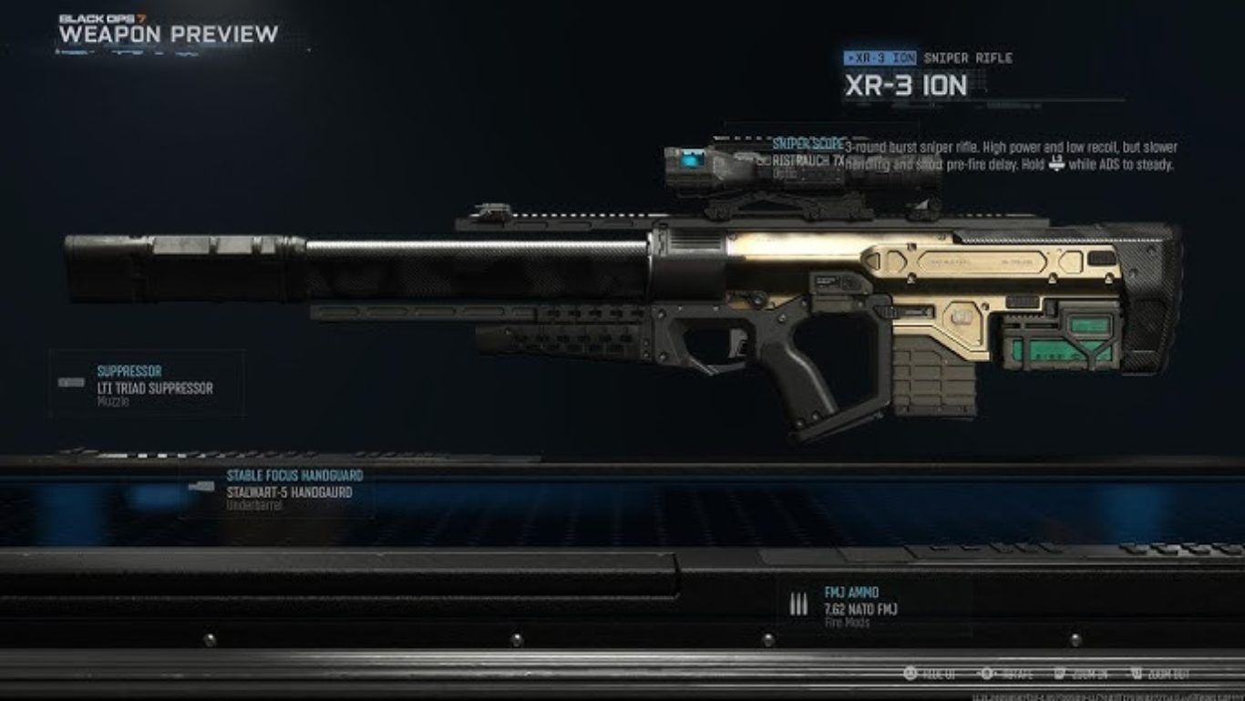 يعد سلاح XR 3 Iron من أكثر بنادق القنص غير التقليدية في Black Ops 7 لأنه يعتمد على إطلاق bursts من ثلاث طلقات بدلًا من الإطلاق الفردي ويمنح هذا الأسلوب السلاح قدرة عالية على إسقاط الخصم بضربة واحدة حتى مسافة تصل إلى مئة متر إذا أصابت الطلقات الثلاث منطقة الجذع وهو ما يجعل تعزيز مدى الضرر غير ضروري في اللعب الجماعي العادي لأن السلاح يتمتع بطبيعته بقوة كافية في المسافات المتوسطة والبعيدة.