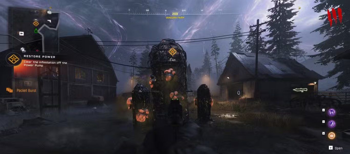 بعد تشغيل مركبة Ol Tessie في الخطوة الأولى تبدأ المرحلة الثانية التي تعتمد على قيادة المركبة نحو منطقة Vandorn Farm واستعادة الطاقة فيها وهي خطوة أساسية لأن نظام الطاقة في هذه الخريطة يرتبط بعدة مواقع يجب تنشيطها بالتتابع قبل الوصول إلى مرحلة تفعيل Pack a Punch.