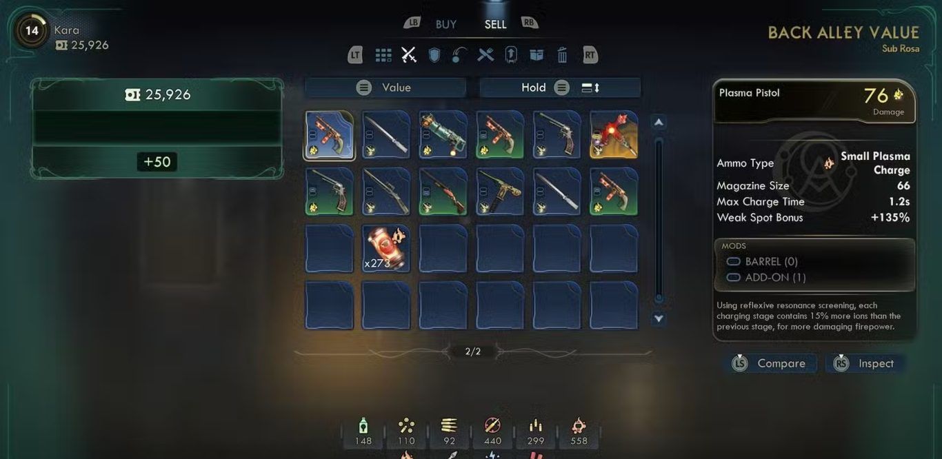 منذ اللحظة الأولى التي تبدأ فيها رحلتك، احرص على تفتيش كل صندوق، وخزانة، ودرج، وحتى جثة تصادفها. كل عنصر يمكن أن يحمل قيمة مالية، سواء كان سلاحًا، أو درعًا، أو مكونًا للتصنيع، أو قطعة غريبة المظهر. وبما أن اللعبة تحتوي على العديد من نقاط البيع والتجار المنتشرين في مختلف المستعمرات والمناطق، يمكنك دائمًا تحويل هذه المقتنيات إلى Bits كلما أتيحت لك الفرصة.