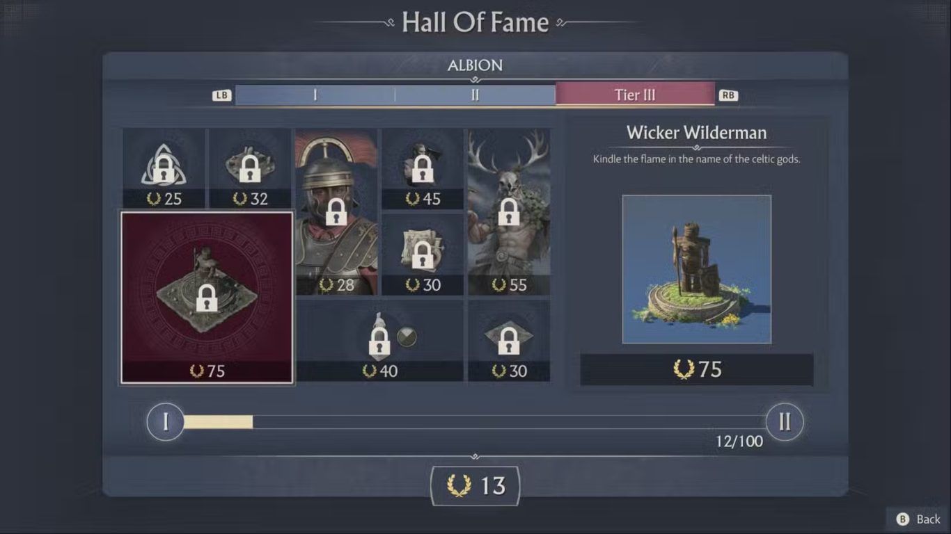 نظام Hall of Fame في Anno 117: Pax Romana مقسم إلى مكافآت خاصة بمنطقتين هما Latium وAlbion، وكل منطقة تحتوي على عدة مستويات (Tiers). لفتح مستوى جديد من المكافآت في أي منطقة، يجب على اللاعب أولًا إنفاق عدد معين من نقاط الشهرة Fame Points داخل المستوى الحالي. بعض المكافآت تكون تجميلية فقط مثل الزخارف والألوان والرموز، بينما تقدم مكافآت أخرى فوائد عملية داخل اللعبة مثل موارد إضافية أو وصول مبكر للآلهة أو الاكتشافات.
