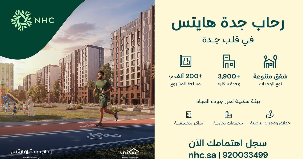 أعلنت NHC عن إتاحة تسجيل الاهتمام في مشروع "رحاب جدة هايتس"، الواقع في قلب وجهة جدة هايتس، على مساحة تتجاوز 200 ألف متر مربع، يضم أكثر من 3,900 شقة سكنية بتصاميم حديثة ومساحات متنوعة.