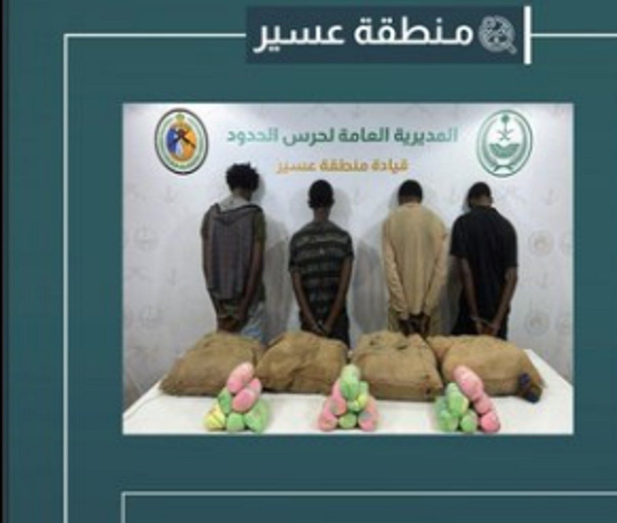 كما ألقت الدوريات البرية لحرس الحدود في قطاع الربوعة بمنطقة عسير، القبض على (4) مخالفين لنظام أمن الحدود من الجنسية الإثيوبية، لتهريبهم (80) كيلوجرامًا من نبات القات المخدر، مشيرة إلى تطبيق الإجراءات النظامية الأولية بحقهم، وتسليم المضبوطات لجهة الاختصاص.