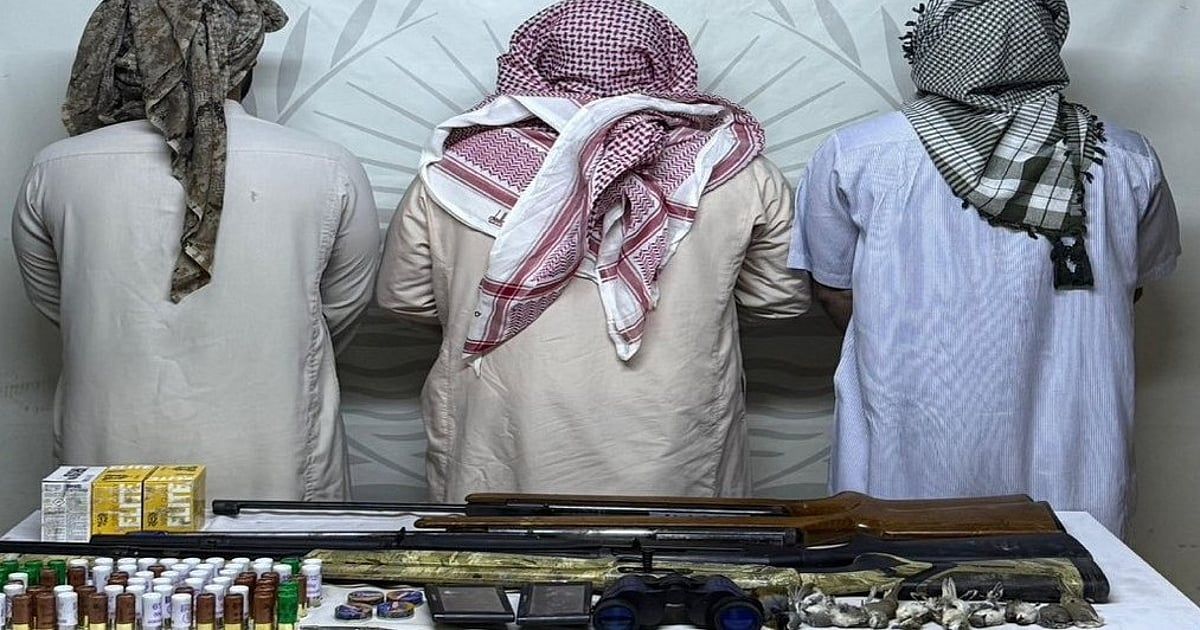 وضبط بحوزتهم بندقيتان من نوع شوزن، وبندقيتان هوائيتان، و560 ذخيرة متنوعة، بالإضافة إلى 10 كائنات فطرية مصيدة. وتم إيقافهم واتخاذ الإجراءات النظامية بحقهم، تمهيدًا لإحالتهم إلى الجهات المختصة.