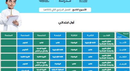 نشرت وزارة التعليم، عبر قناة “عين”، اليوم الأحد، جداول الحصص الدراسية اليومية للأسبوع السابع من الفصل الدراسي الأول عبر قنوات “عين” ومنصة “مدرستي” التعليمية.