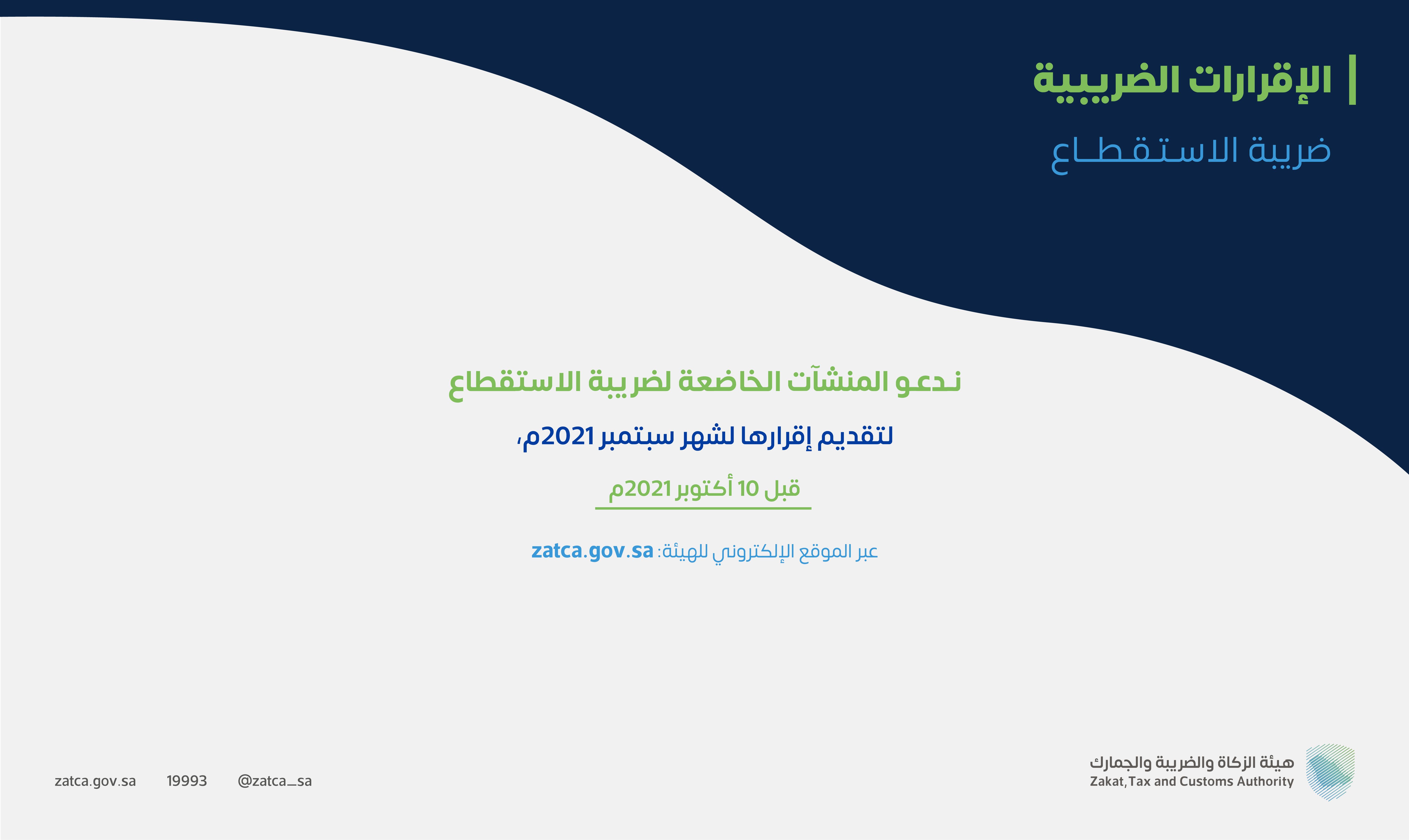 دعت هيئة الزكاة والضريبة والجمارك “زاتكا” المنشآت الخاضعة لضريبة الاستقطاع في المملكة، إلى تقديم نماذج استقطاع الضريبة عن شهر سبتمبر 2025م، وذلك في موعدٍ أقصاه 12 أكتوبر 2025م.