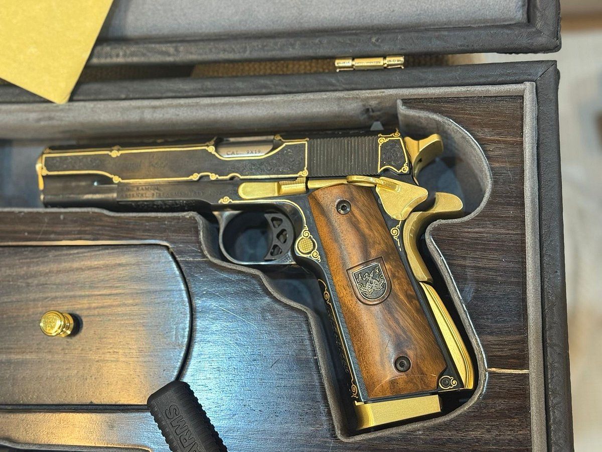 ومن القطع المميزة أيضًا، مسدس Arsenal الإيطالي الذي يُصنّع حسب الطلب بأسعار تبدأ من 60 ألف ريال وتصل إلى أكثر من 100 ألف، مع خيارات النقش والتخصيص. كما وُعرض مسدس Smith & Wesson الكلاسيكي المزخرف يدويًا بسعر 25 ألف ريال.