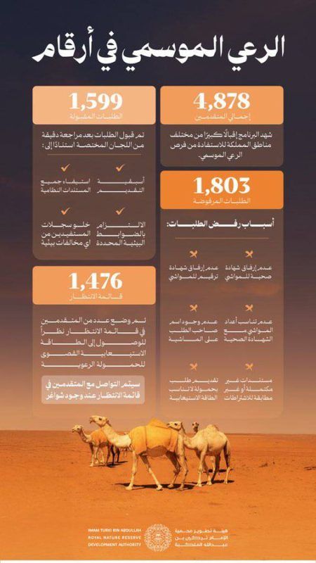 وتؤكد الهيئة استمرارها في رصد ومتابعة الملاحظات الميدانية ومعالجتها بالتعاون مع المستفيدين، لضمان تطوير البرنامج بشكل مستمر وتحسين تجرية الرعي الموسمي، بما يعكس التزام الهيئة بتحقيق التوازن بين حماية البيئة وتلبية احتياجات ملاك الماشية.