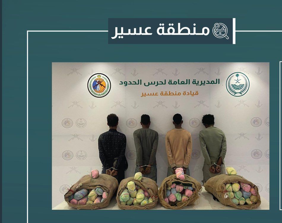 قبضت الدوريات البرية لحرس الحدود في قطاع العارضة بمنطقة جازان على (4) مخالفين لنظام أمن الحدود من الجنسية اليمنية، لتهريبهم (38) كيلوجرامًا من نبات القات المخدر، وجرى استكمال الإجراءات النظامية الأولية بحقهم، وتسليمهم والمضبوطات لجهة الاختصاص.