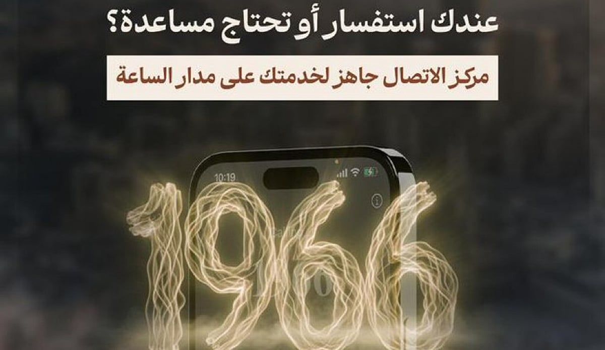 في إطار الجهود المستمرة لخدمة قاصدي الحرمين الشريفين، يواصل مركز العناية بضيوف الرحمن تقديم خدماته الإرشادية والتفاعلية على مدار الساعة، عبر الرقم الموحد (1966)، للحجاج والمعتمرين والزوار.