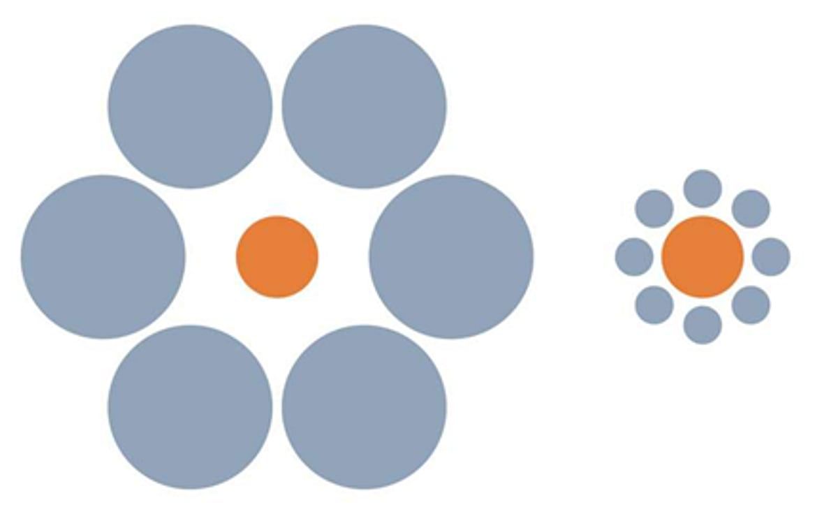 ووفقاً لتقرير على موقع ميديكال إكسبريس، إذا نظرت إلى دائرتين بنفس الحجم تمامًا وظننت أن إحداهما أكبر، فقد خُدعت عيناك بـ"وهم إبينغهاوس"، وهو مثال كلاسيكي على كيفية تأثير المشهد الكامل على إدراك التفاصيل، فوضع دائرة بين دوائر أصغر يجعلها تبدو أكبر بينما وضعها بين دوائر أكبر منها، يجهلها تتقلص أمام أعيننا.