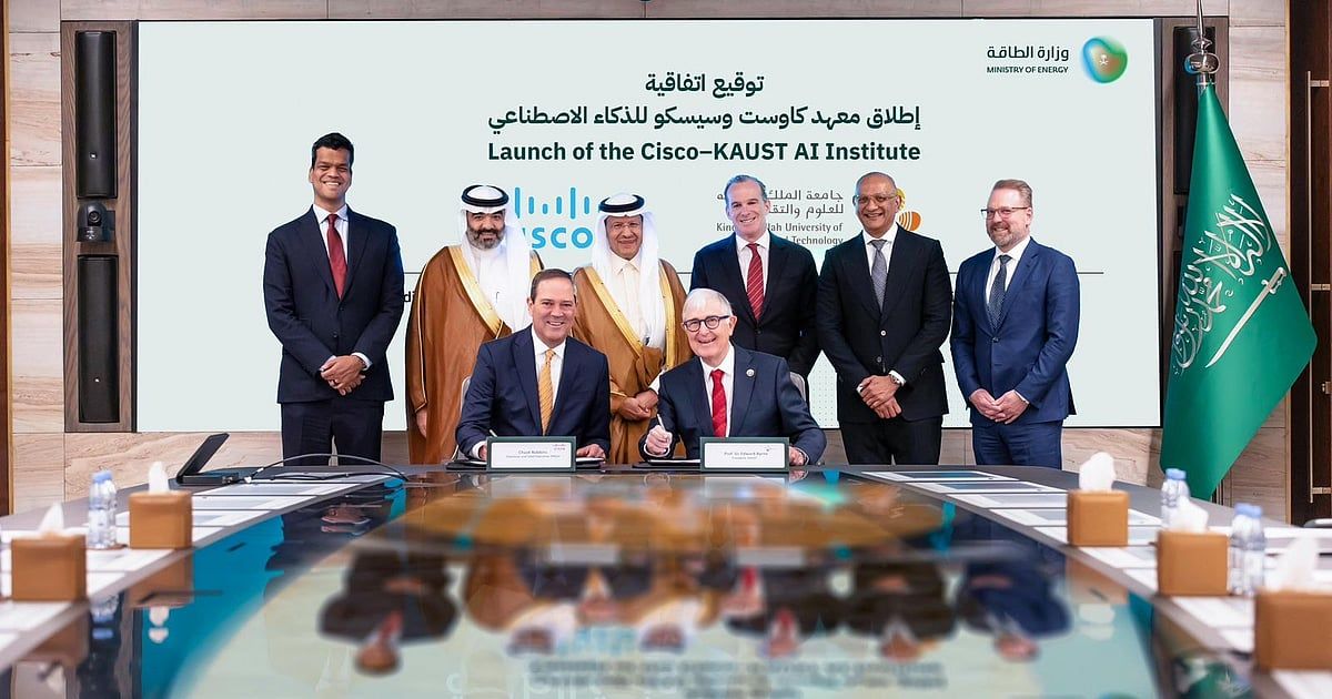 بحضور الأمير عبدالعزيز بن سلمان بن عبدالعزيز وزير الطاقة ورئيس مجلس أمناء جامعة الملك عبدالله للعلوم والتقنية (كاوست)، أعلنت الجامعة وشركة سيسكو الرائدة عالميًا في مجالات الشبكات والأمن السيبراني، عن توسّع كبير في شراكتهما الاستراتيجية من خلال إنشاء معهد متطور للذكاء الاصطناعي في حرم الجامعة بثول.