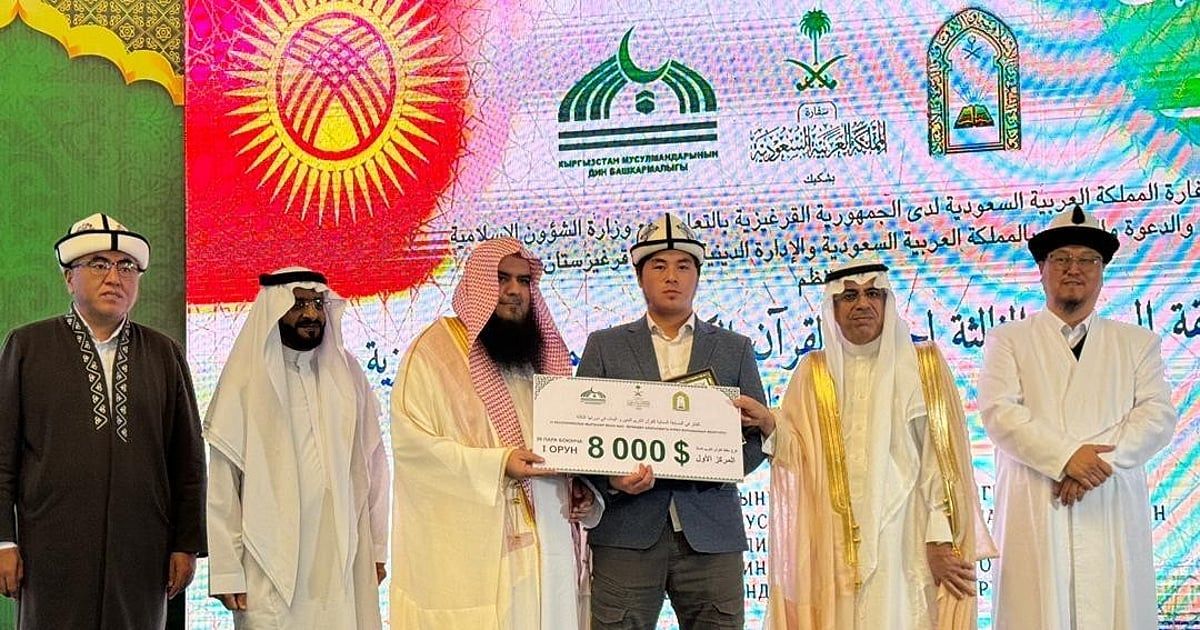 وقام سفير خادم الحرمين الشريفين لدى قرغيزستان، الأستاذ إبراهيم بن راضي الراضي، بتسليم الجوائز للفائزين، بحضور مستشار وزير الشؤون الإسلامية والدعوة والإرشاد، الأستاذ محمد بن عبدالواحد العريفي، وعدد من الشخصيات الرسمية والدينية، من ضمنهم رئيس الوكالة الوطنية لشؤون الأديان والعلاقات بين الأعراق، ومفتي الجمهورية.