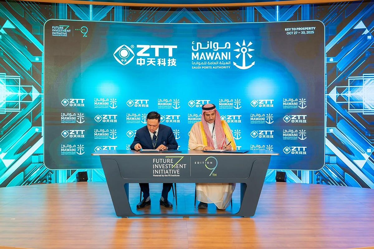 وجرى توقيع الاتفاقية بين سعادة رئيس الهيئة العامة للموانئ المهندس سليمان بن خالد المزروع، وسعادة الرئيس التنفيذي لمجموعة "ZTT" السيد شيوي جيانلين، خلال فعاليات مؤتمر مبادرة مستقبل الاستثمار التاسع المنعقد في مدينة الرياض.