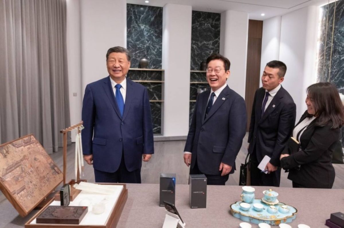 أهدى الرئيس الصيني شي جين بينغ نظيره الكوري الجنوبي لي جيه ميونغ هاتفين ذكيين، وحثّه مازحاً على «التحقق مما إذا كان هناك باب خلفي»، خلال زيارة رسمية أمس الأول (السبت).