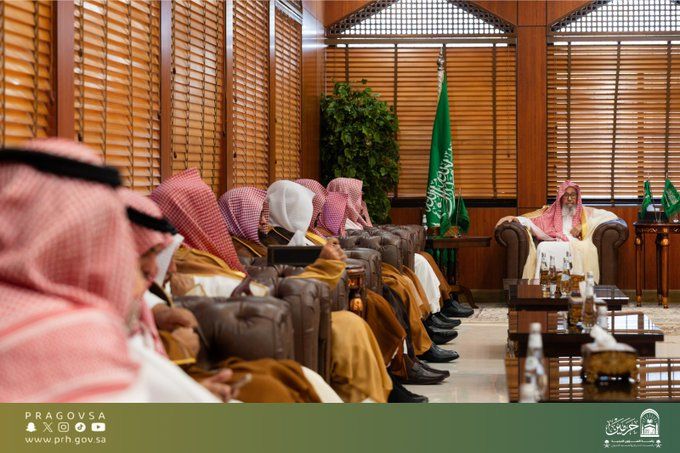جاء ذلك خلال استقبال سماحته لمعالي الشيخ الأستاذ الدكتور عبد الرحمن بن عبد العزيز السديس، رئيس الشؤون الدينية بالمسجد الحرام والمسجد النبوي، وعددٍ من أصحاب الفضيلة أئمة وخطباء و مؤذني المسجد الحرام والمسجد النبوي، الذين قدّموا التهنئة لسماحته بمناسبة صدور الأمر الملكي الكريم بتعيينه مفتيًا عامًا للمملكة العربية السعودية.