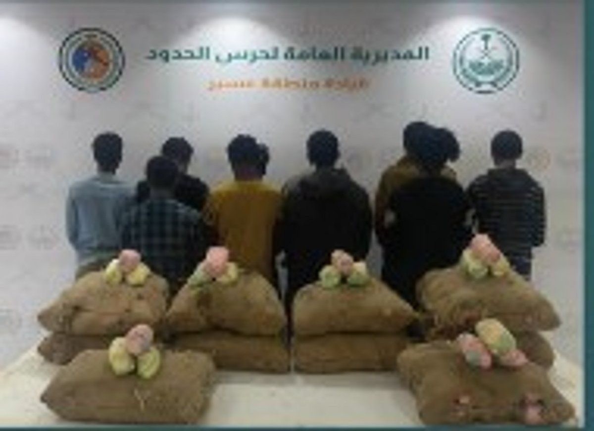 قبضت الدوريات البرية لحرس الحدود في قطاع الربوعة بمنطقة عسير على (10) مخالفين لنظام أمن الحدود من الجنسية الإثيوبية، لتهريبهم (180) كيلوجرامًا من نبات القات المخدر.