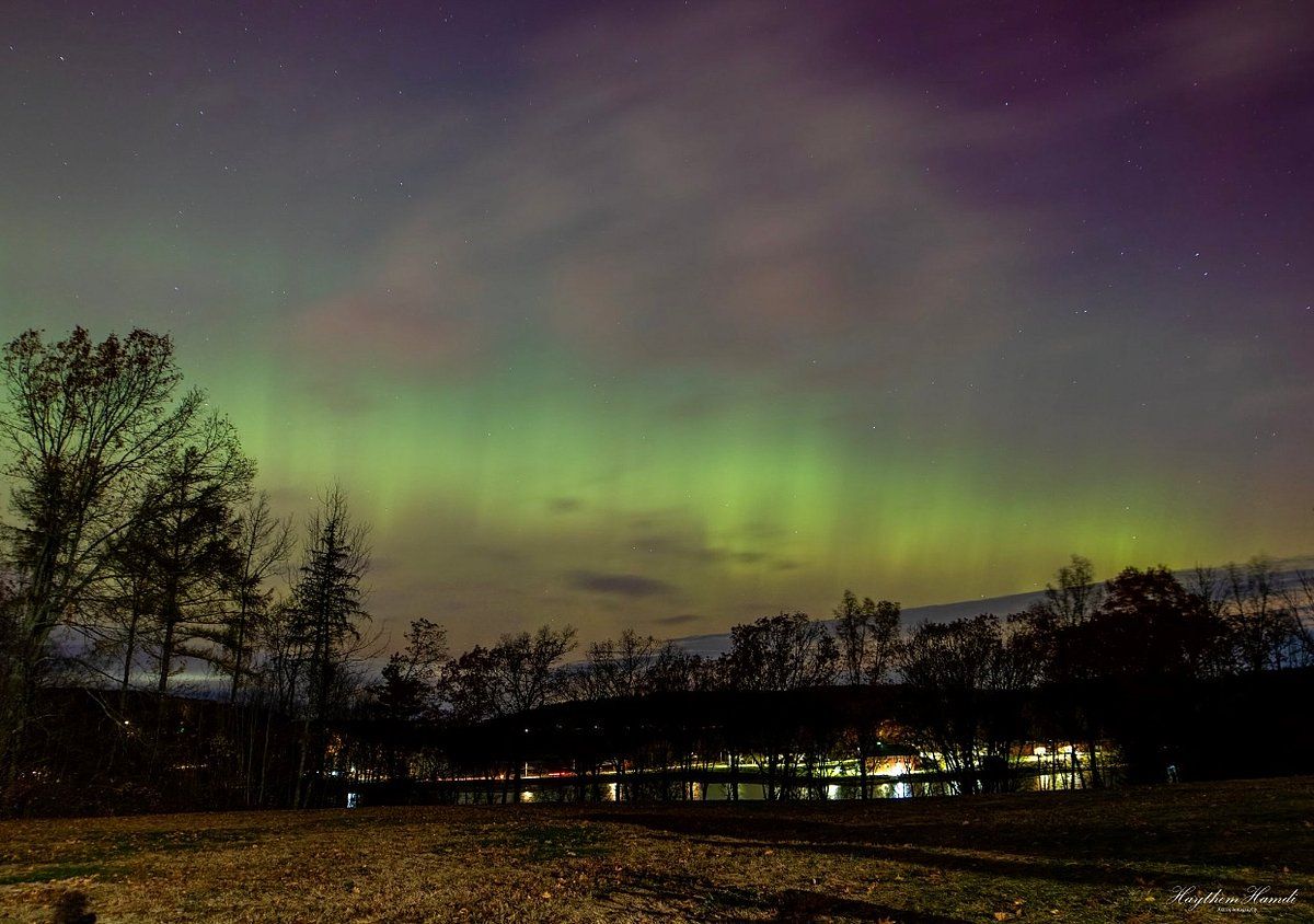 التقطَ عضو مركز الفلك الدولي، السيد هيثم حمدي من ولاية "ماساتشوستس" في الولايات المتحدة ، صورًا مذهلة للشفق القطبي ، وذلك بسبب حدوث عاصفة مغناطيسية أرضية بقوة G4 (Kp=8.7)، ناتجة عن وصول انبعاثات إكليلية شمسية مرافقة لتوهج شمسي حصل على الشمس بقوة X5.1، بجوار البقعة الشمسية رقم AR4274.