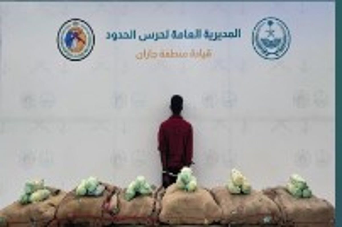 قبضت الدوريات البرية لحرس الحدود في قطاع الدائر بمنطقة جازان على  مخالف لنظام أمن الحدود من الجنسية الإثيوبية، لتهريبه (108) كيلوجرامات من نبات القات المخدر.